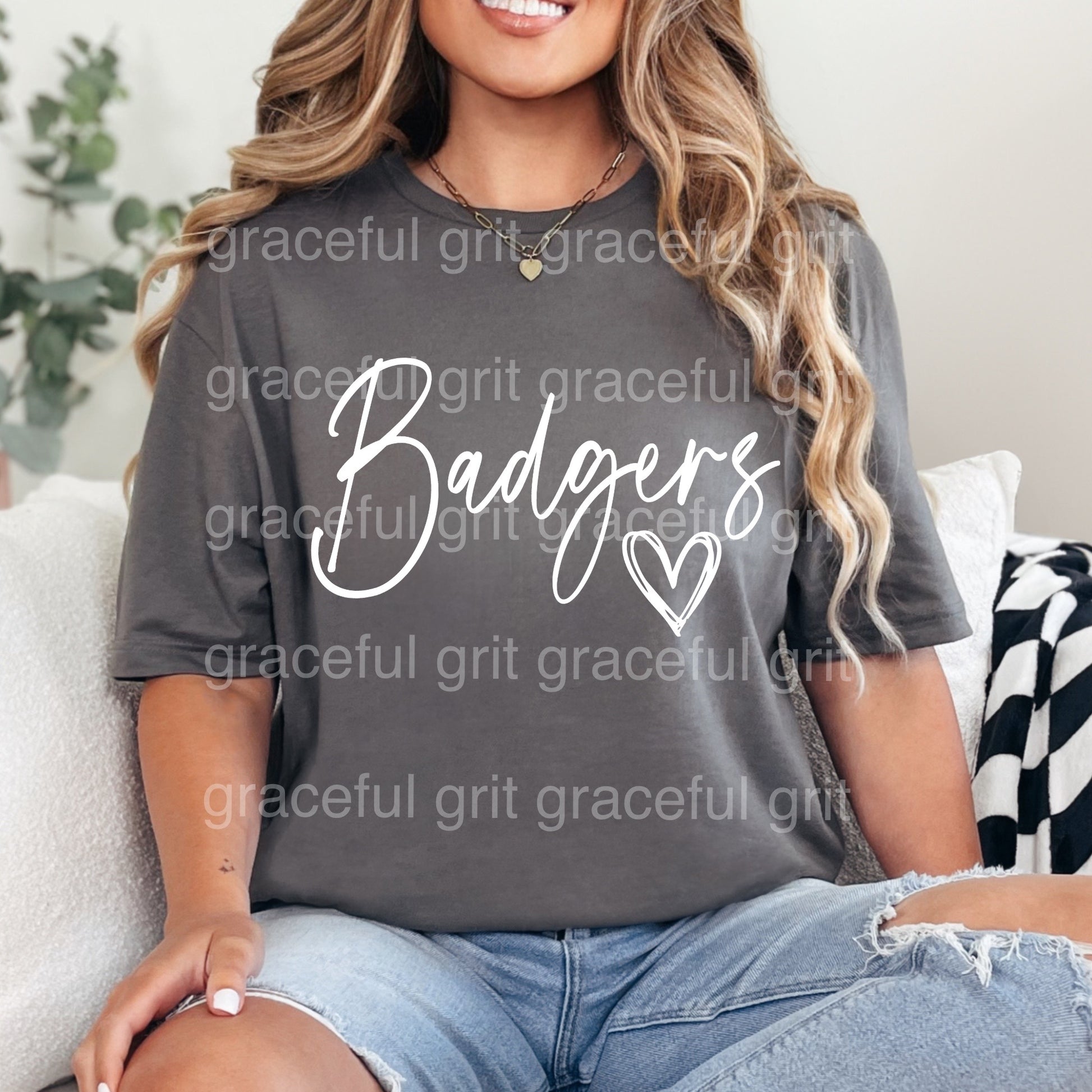 Cursive Badgers White Heart